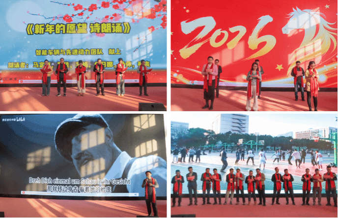 深情婉转的诗朗诵《新年的愿望》,以细腻的笔触勾勒出老师们对个人成长、学院腾飞、国家兴盛的美好期许,字字句句饱含深情,触动在场每个人的心底;各创新团队精心选送的节目各具特色、亮点纷呈,《眼泪不撒谎》情感真挚、婉转缠绵,《我相信》朝气蓬勃、充满力量,《获奖之作》创意十足、趣味盎然,《万疆》大气磅礴、直击人心,精湛的表演与独特的编排将现场气氛一次次推向高潮。值得一提的是,在2025年教职工篮球比赛总决赛中勇夺桂冠的院男子篮球队,集体献唱《相信自己》,歌声里满是团结协作的底气与自信自强的锋芒,生动展现了能动人赛场内外同心致远、奋勇争先的精神风貌,引发全场强烈共鸣,掌声与欢呼声经久不息。